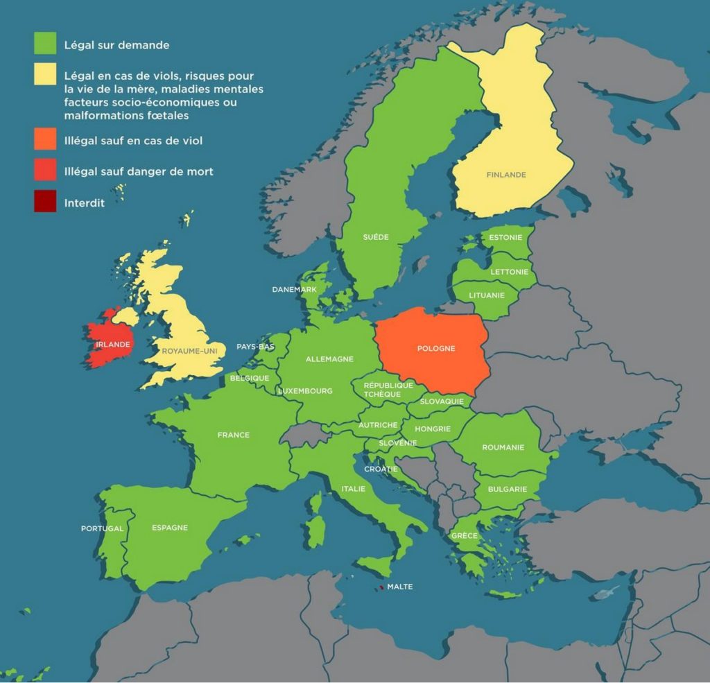 Le droit à l’avortement est garanti presque sans conditions dans la plupart des pays européens. Des conditions strictes sont imposées dans 2 pays seulement : la Pologne et Malte. C’est assez positif, sauf que si on se penche sur la réalité de certains pays, ce n’est pas si rose.