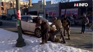 Un peu partout, les citoyens filment pour témoigner de ce qui se passe. La courte vidéo (de la chaine M6INFO) montre comment ça s’est passé et les réactions des pouvoirs fédéraux. Les sifflets qu’on entend, ce sont des citoyens qui alertent d’autres citoyens de la présence de l’ICE.