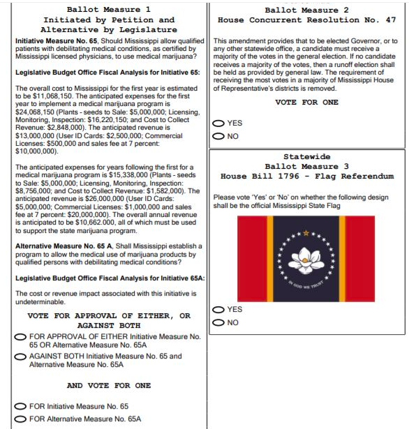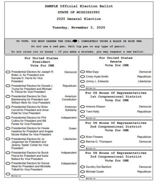 Voici la 1ère partie du bulletin de vote de l’État du Mississipi