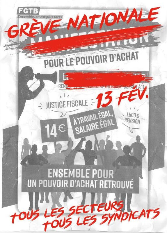 En Belgique, les 3 syndicats du pays, FGTBAbréviation de Fédération Générale des Travailleurs de Belgique. Sa couleur: le rouge., CSCConfédération des Syndicats Chrétiens. Sa couleur: le vert. et CGSLBConfédération Générale des Syndicats libéraux de Belgique, plutôt libéral mais moins politique que la CSC et la FGTB. Sa couleur: le bleu., ont lancé un appel à la grève nationale. Objectif ? Ils ne sont pas d’accord avec ce que le gouvernement et les patrons proposent aux travailleurs et aux allocataires sociaux. Ils veulent que chacune et chacun puissent vivre dignement. C’est bien, mais c’est un peu vague direz-vous… Les syndicats précisent.
