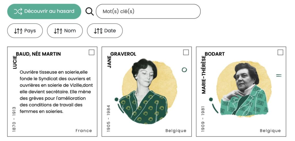 Au départ, c’était un exercice de visualisation de données. L’idée était simple : rendre visibles des informations souvent invisibles. Permettre de voir en un coup d’œil si une femme a été invisibilisée de son vivant, était féministe, née en Belgique, etc. Très vite, le projet a pris une autre ampleur. Pourquoi ne pas créer un répertoire clair et accessible de femmes ayant marqué l’histoire ?