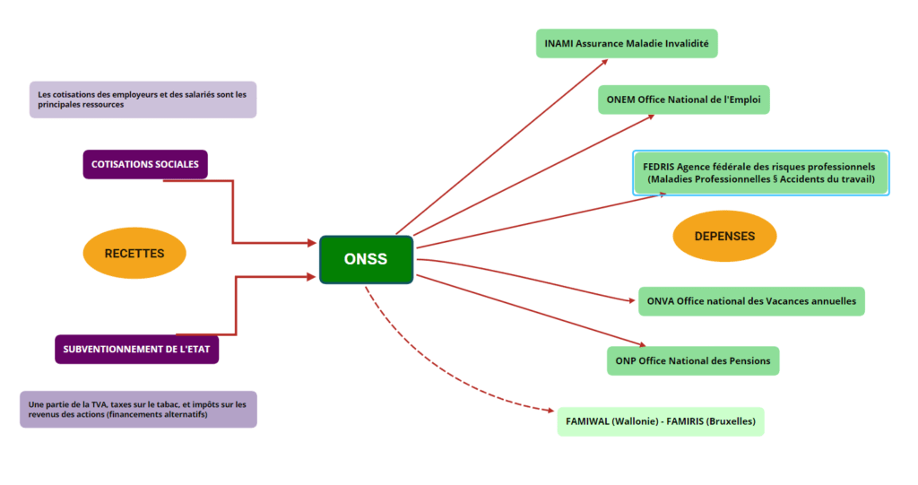 Les syndicats et les mutuelles ont joué en rôle important dans la création de la sécurité sociale. Ce sont eux qui encaissaient et redistribuaient les cotisations des travailleurs pour l’assurance chômage et pour l’assurance maladie-invalidité. Les syndicats et les mutuelles sont donc indispensables au fonctionnement du système. Après la création du système officiel en 1945, les syndicats et les mutuelles ont continué à jouer un rôle très important. L’ONSS est d’ailleurs géré par des représentants de l’Etat, des travailleurs et des patrons. On les appelle les “partenaires sociaux”.