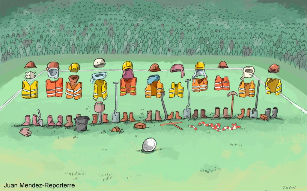 Des études très sérieuses montrent que les conditions de travail sont très mauvaises. Le Qatar fait des travaux pour la Coupe du monde depuis 2010. En 2013 déjà, des organisations humanitaires dénonçaient les dangers de travailler sur les chantiers, les salaires de misère, les horaires impossibles, une vie d’esclave ou presque. Le journal Le Monde diplomatique publiait en 2016 un article avec pour titre : Esclaves du 21e siècle. Il y a quelques mois, le journal britannique The Guardian publiait un enquête qui dit qu’il y a eu au moins 6 500 morts sur les chantiers de construction au Qatar depuis 2010. Beaucoup de ces constructions étaient pour la Coupe du monde.