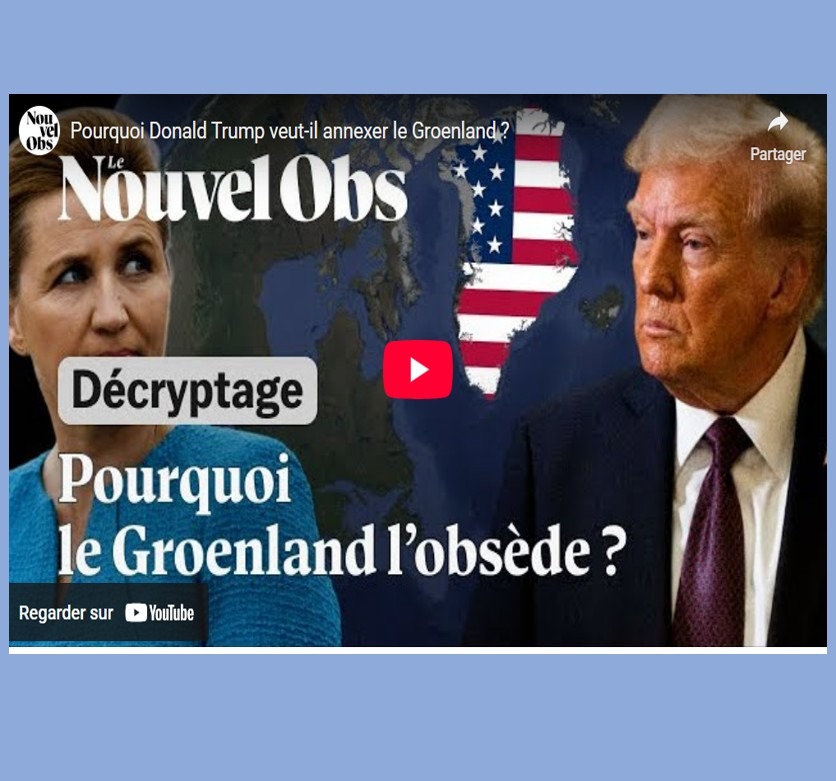 Cette vidéo de 3 minutes explique pourquoi Trump voulait le Groenland. La vidéo date de l’année dernière, mais les raisons sont les mêmes en 2026. D’ailleurs, Trump n’a pas réussi à avoir le Groenland, mais il aura sans doute un bon accord commercial et militaire avec le Groenland.