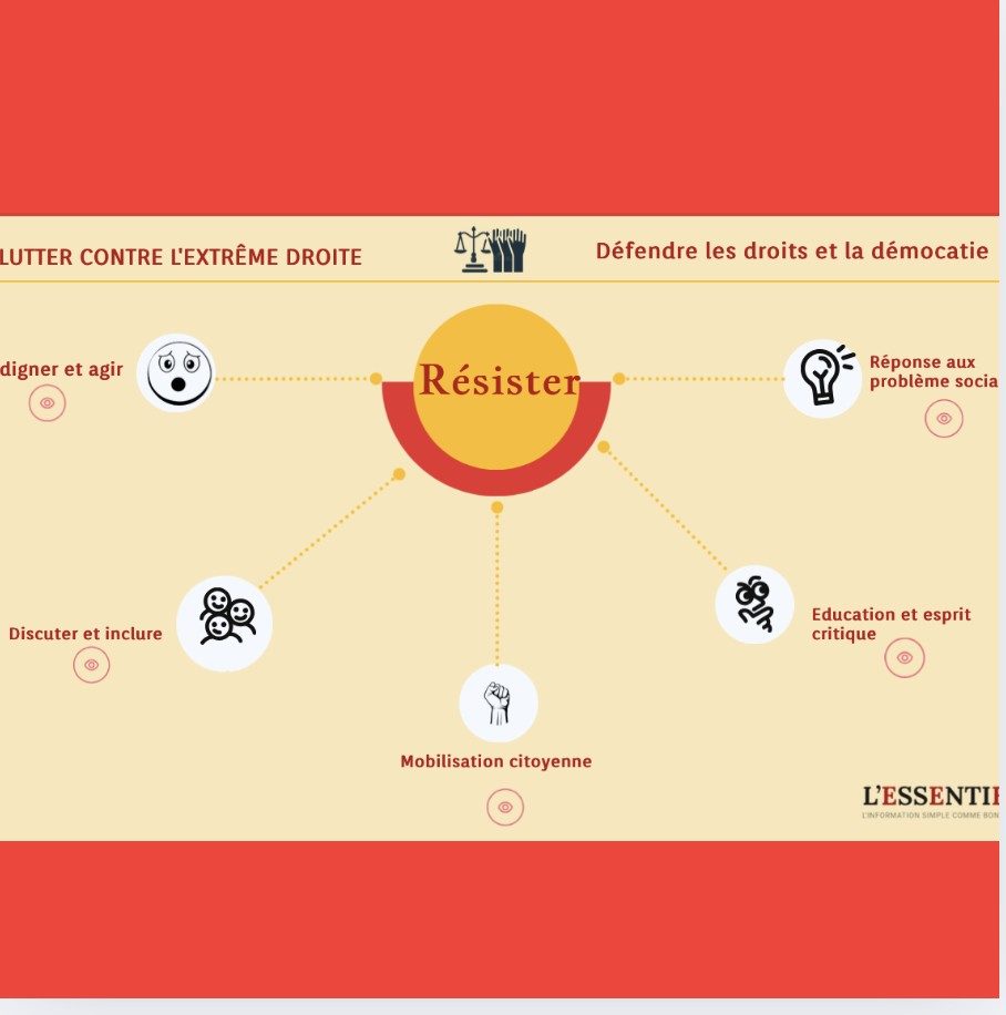 Comment se battre contre les idées d’extrême droite ? Le schéma ci-dessous présente quelques réponses inspirées du livre de Salomé Saqué, Résister.
